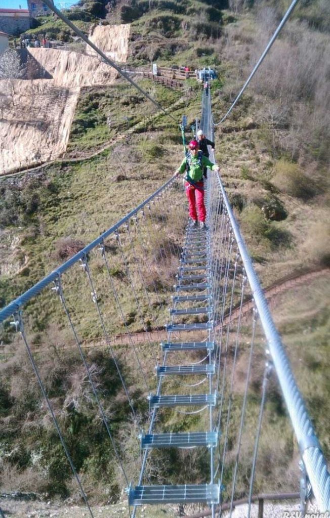 Attraverso le stradine che si diramano tra le caratteristiche abitazioni in pietra del centro storico, si raggiunge la partenza del primo ponte, lungo 95 metri e sospeso a circa 70 metri di altezza, attraverso il quale si giunge alla sponda opposta su un versante caratterizzato da formazioni geologiche caratteristiche.