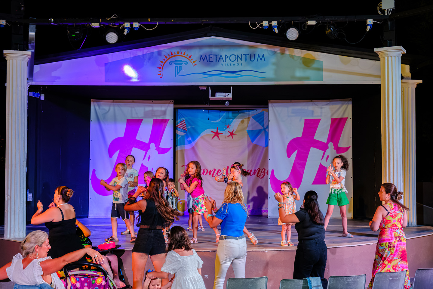 Al Metapontum Village ogni giorno è speciale. Tra eventi, spettacoli teatrali, show, cabaret giochi per bambini e tornei sportivi, il villaggio è un luogo dove la spensieratezza fa da padrona.